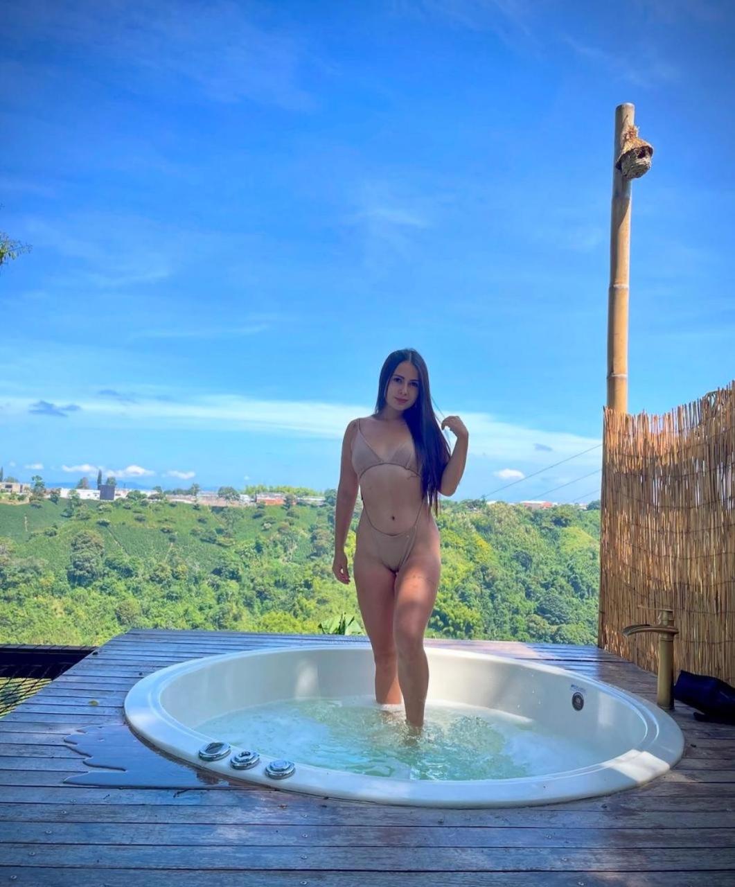 Happy Glamping Quindio - Tipo Domo Traslúcido está en Calarcá y dispone de vistas a la montaña, jardín, terraza y bar. El alojamiento tiene bañera de hidromasaje y bañera de hidromasaje.