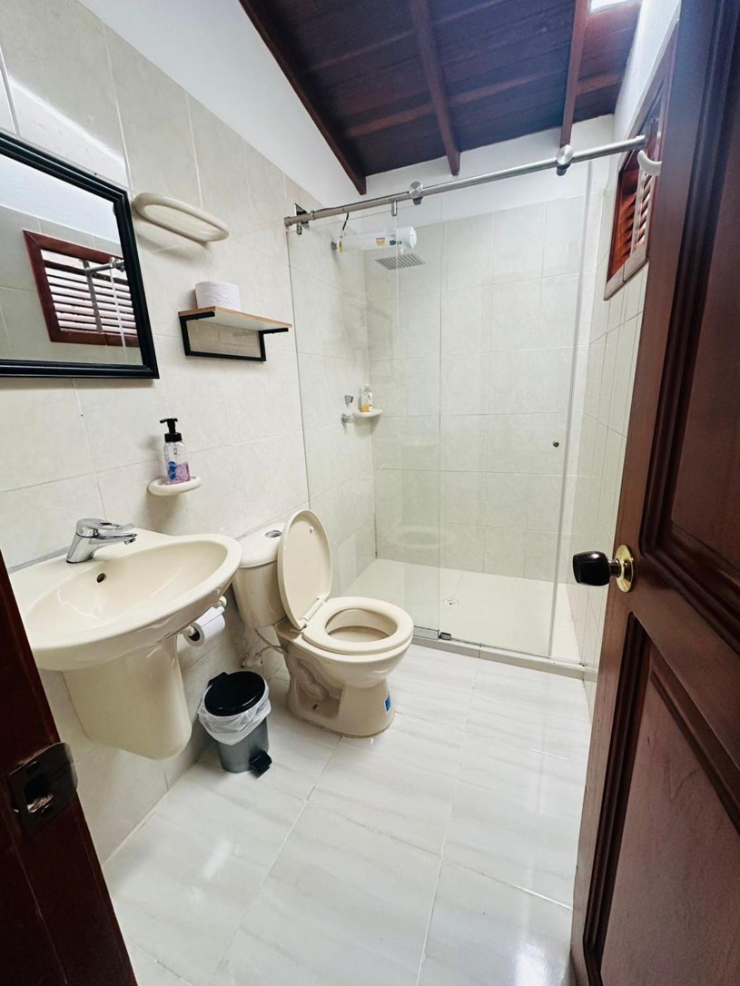 Habitación Doble con baño privado. The double room includes a private bathroom fitted with a shower. This double room features a flat-screen TV. The unit has 1 bed.